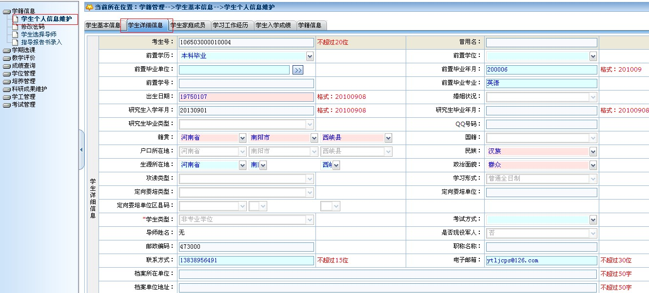 3. 9月30日前组织学生完善个人详细信息、最新联系方式、学习工作经历。凡是绿色框都可以填写修改(如下图):