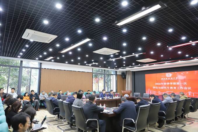 3月5日下午,我校2026年春季学期第一次学位与研究生教育工作会议在西区立德楼C117召开。本次会议紧扣立德树人根本任务,深入贯彻落实教育强国战略部署,以高质量推进“十五五”学科规划落地为抓手,系统谋划、全面部署2026年学校学位与研究生教育各项工作。校党委常委、副校长胡安江出席会议并讲话,会议由研究生院院长马武林主持。