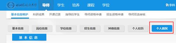 2. 请各学院组织参加双选的导师在研究生信息平台中(推荐使用google chrome浏览器)查看个人简况(此处内容便于学生了解导师科研情况)。如有修改,详细操作请见附件2《指导教师教学科研情况表填写指南》。