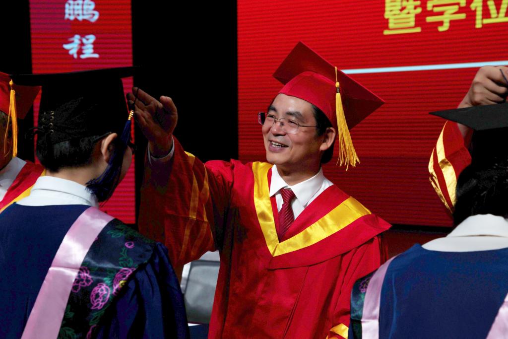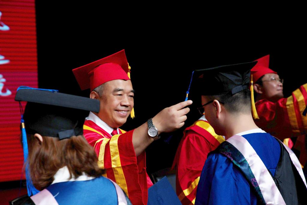 图片1.明国辉为毕业生拨穗