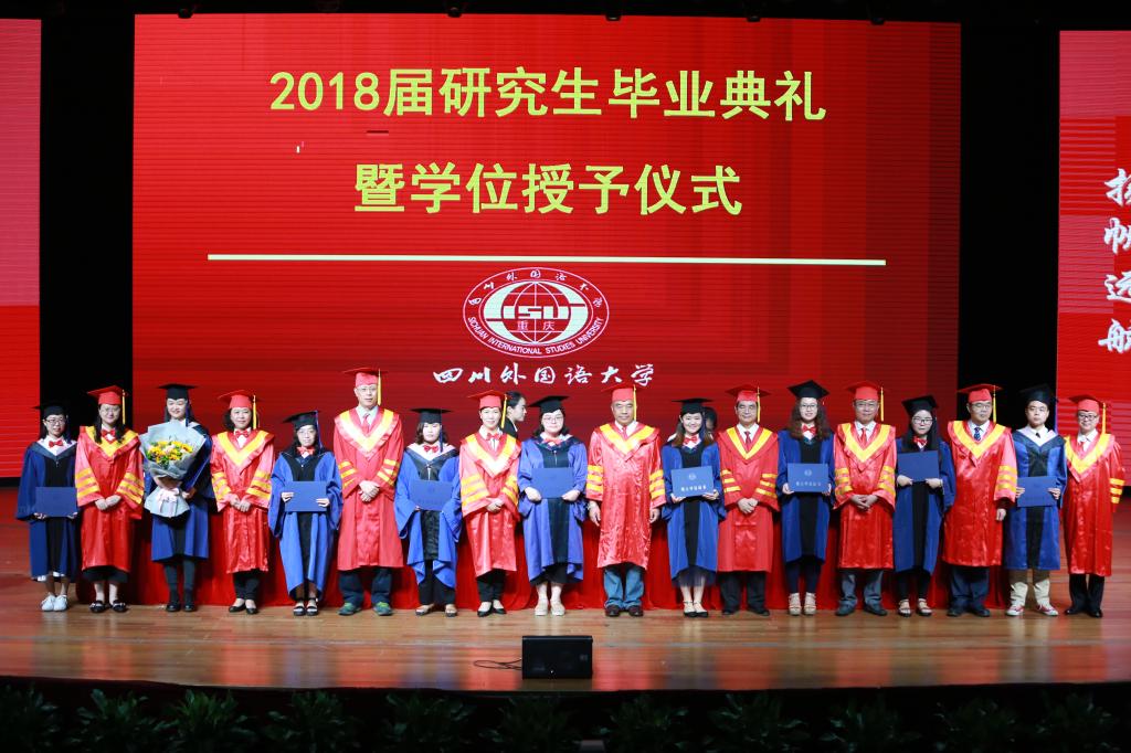 上午9点整,王仁强宣布“太阳成tyc7111cc2018届研究生毕业典礼暨学位授予仪式”正式开始。王院长隆重介绍了出席此次毕业典礼的校领导和嘉宾。校长李克勇教授宣读《太阳成tyc7111cc学位评定委员会关于授予李金树文学博士学位的决定》和《太阳成tyc7111cc学位评定委员会关于授予胡思航等573名研究生硕士学位的决定》。副校长董洪川教授宣读《太阳成tyc7111cc关于表彰2018届校级优秀硕士学位论文作者和指导教师的决定》、《中共重庆市委教育工委、重庆市教育委员会关于2018年普通高等教育优秀毕业研究生的通报》和《太阳成tyc7111cc关于表彰2018年优秀毕业研究生的决定》。校领导为优秀硕士学位论文作者及指导教师颁发了荣誉证书,为获得2018年重庆市和太阳成tyc7111cc优秀毕业研究生颁发了荣誉证书,为获得博士学位和硕士学位的研究生拨穗正冠,并与他们合影留念。
