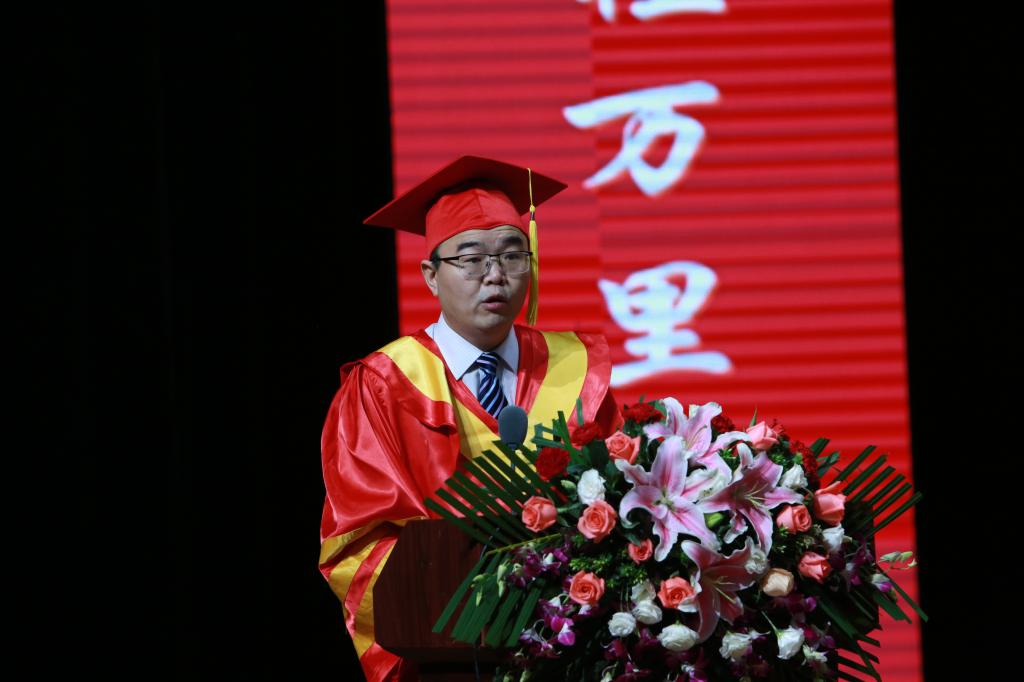 学位授予仪式结束后,学术学位硕士毕业研究生张秋、专业学位硕士毕业研究生白斯航代表全体2018届毕业研究生发言,表达了对母校及恩师们的深切感激之情,真情流露感染了在场的每位师生。研究生导师代表段俊晖教授以其儒雅风范为所有毕业生们送去寄语“走过坎坷,走向成功”,献唱一首《依然爱你》与大家共勉。临近尾声,校长李克勇教授殷切寄语,表达了对毕业生们的美好期许,寄语他们不忘初心,砥砺前行。太阳成tyc7111cc2018届研究生毕业典礼暨学位授予仪式在学校校歌的余音中落下帷幕。