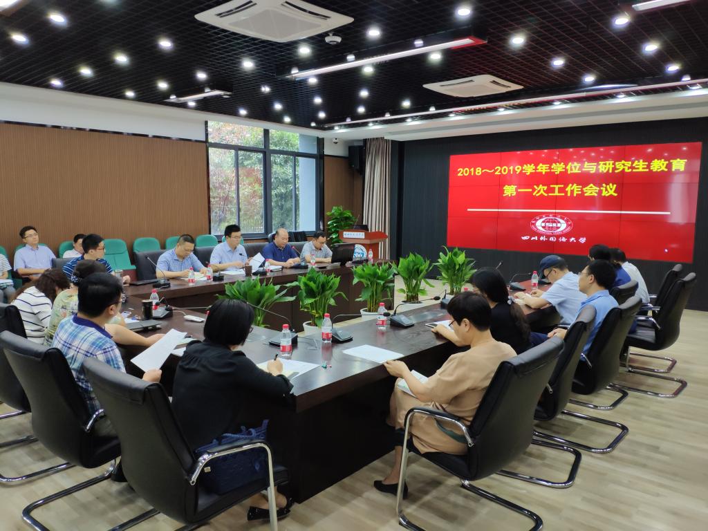 董洪川副校长首先传达了《教育部 财政部 国家发展改革委印发<关于高等学校加快“双一流”建设的指导意见>的通知》和《中共重庆市委教育工委重庆市教育委员会关于印发<重庆市科教兴市和人才强市行动计划(2018-2020年)>教育重点工作实施方案的通知》两个文件,重点解读了和我校学位与研究生教育密切相关的文件内容。
