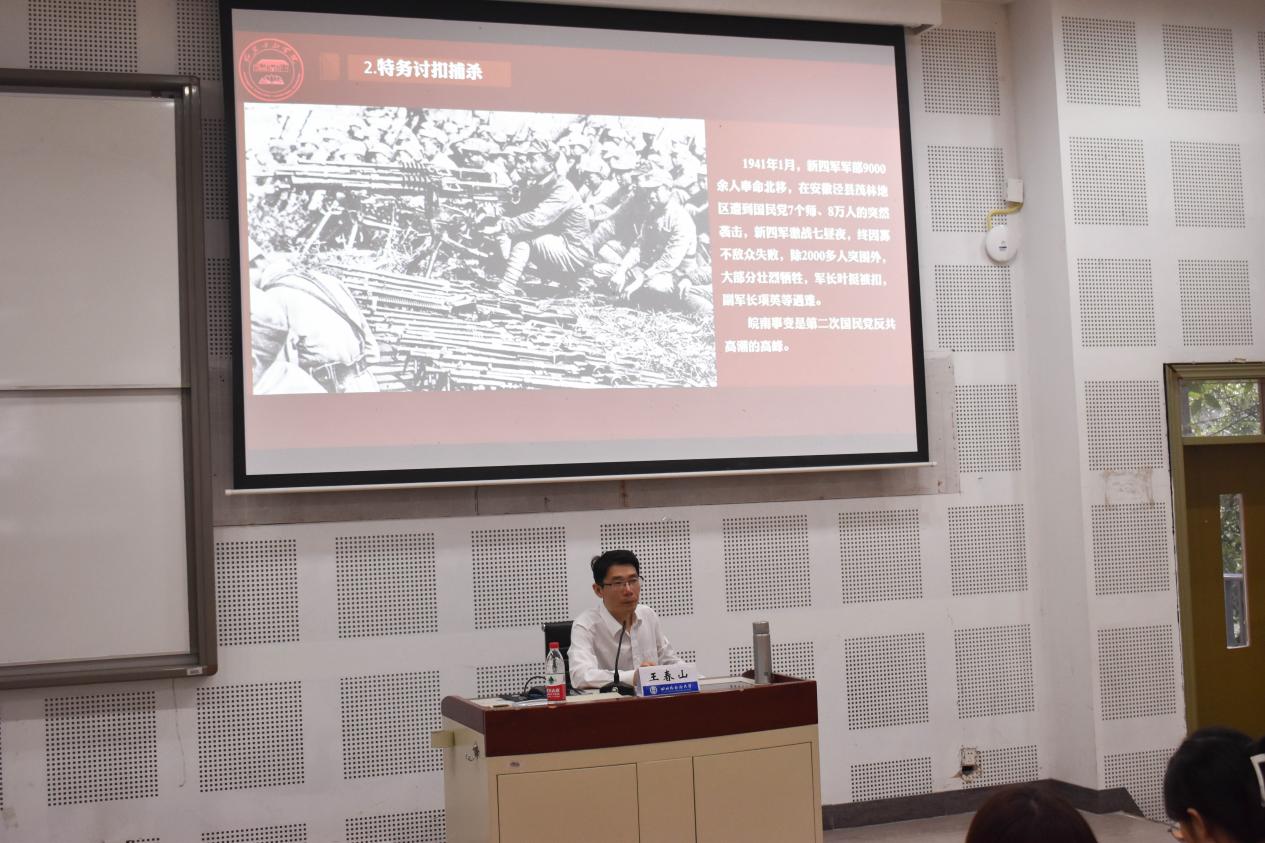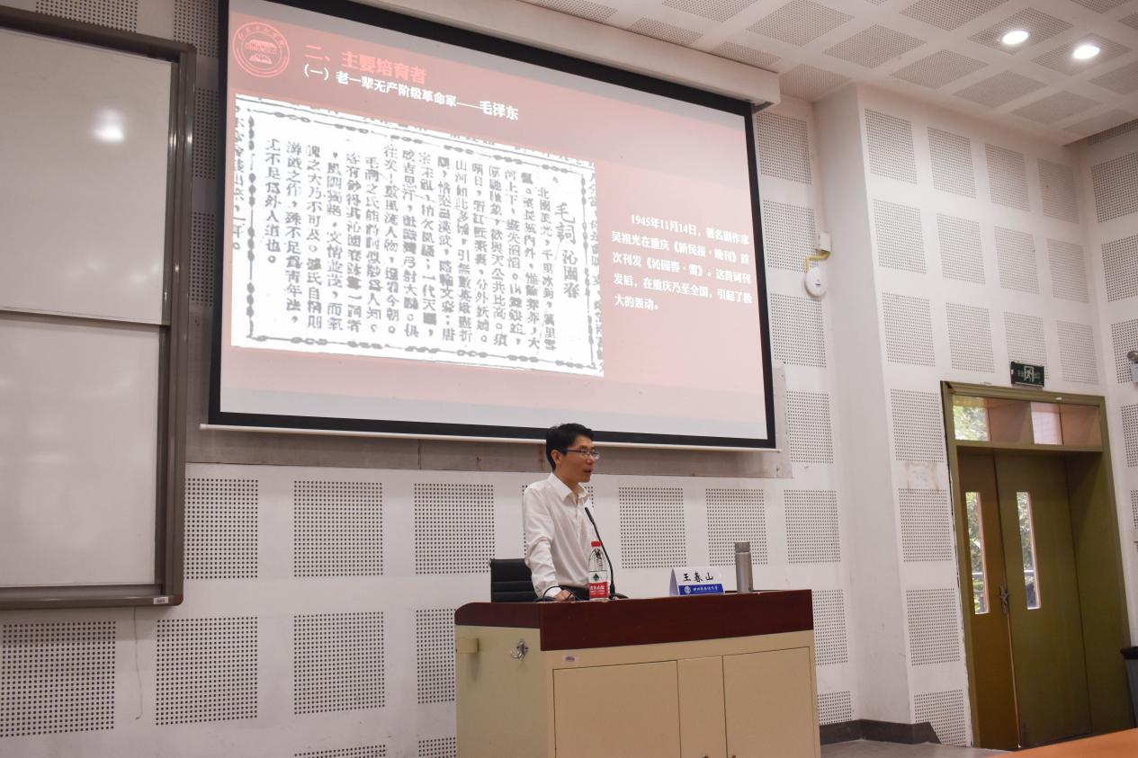 讲座开始之前,王春山老师提出了这样几个问题:什么是“红岩精神”?“红岩”是什么?如何认识和把握“红岩精神”?以此为线索,王春山老师开始了此次讲座。王老师将本次讲座分为五个部分,分别是红岩精神的时代背景和实践基础、主要培育者、丰富内涵、重要地位和重大价值。