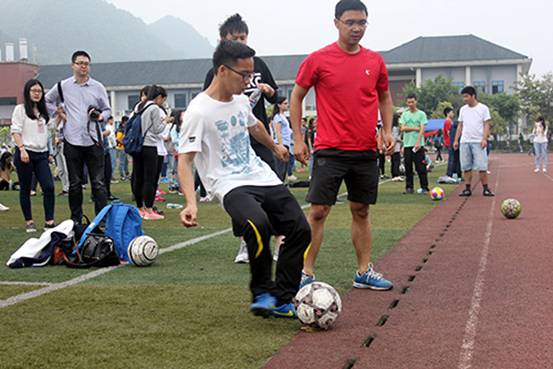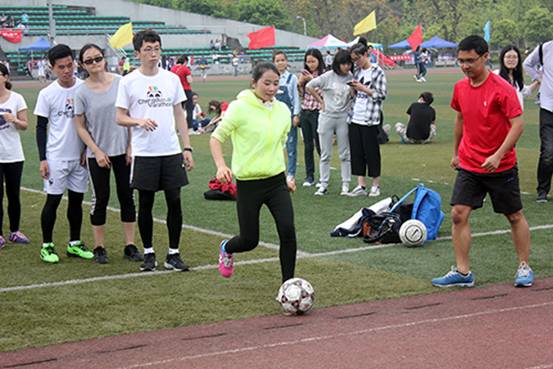 2016年4月15日下午2:30,2016川外春季运动会学生组混合足球射门项目在西区运动场拉开帷幕。研究生院派出由15位同学组成的代表队参加比赛。赛前,队员们便在运动场上认真专注地进行着最后的练习。比赛一开始,所有队员都全神贯注投入比赛,辅以完美的默契和配合,在5分钟内共踢进32个球,取得全校第一名的优异成绩!