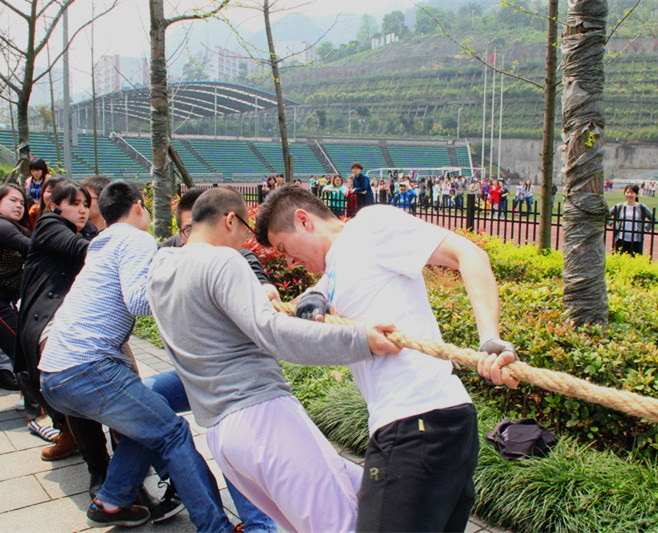 2014年4月2日中午12:30,太阳成tyc7111cc春季运动会拔河比赛半决赛在西校区景观大道拉开帷幕。研究生院拔河队对阵商英队。最终研究生院直落两局,以2:0的总比分挺进决赛,刷新了研究生院征战拔河赛事的最好成绩。