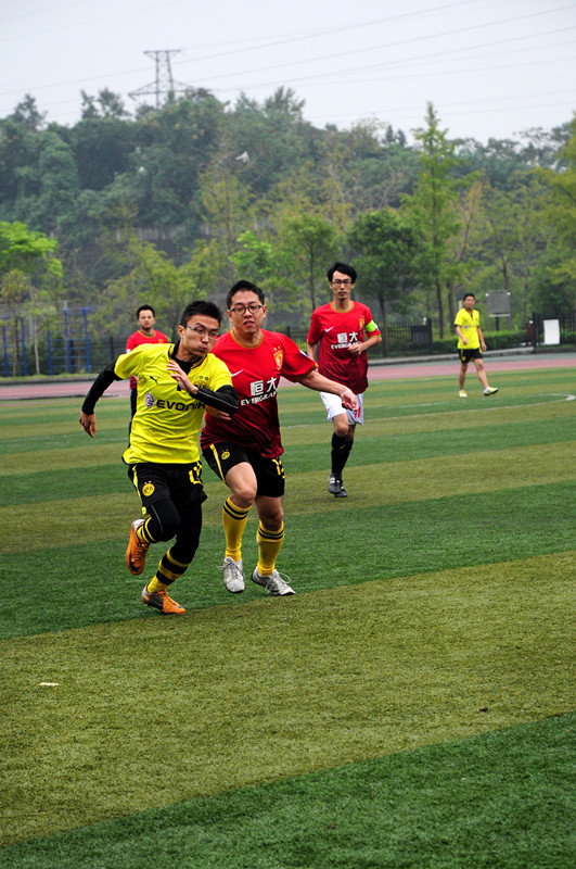 一路高奏凯歌的研院足球队(小组赛三连胜,小组赛排名第一)在伤病队员较多的情况下,仍努力拼搏,锲而不舍,虽然最后以1:2负于应用英语高年级队,止步八强,但是他们的拼搏精神是我们有目共睹的。一场场比赛中,队员们精湛的脚法、完美的带球、犀利的射门以及精彩的配合都给观众们留下了深深的印象。