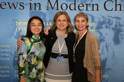 | 13日傅晓微与特拉维夫大学Elana Gomel 教授应邀参加巴伊兰大学古丹妮教授(居中)主持的“犹太人在中国”展览开幕式 |