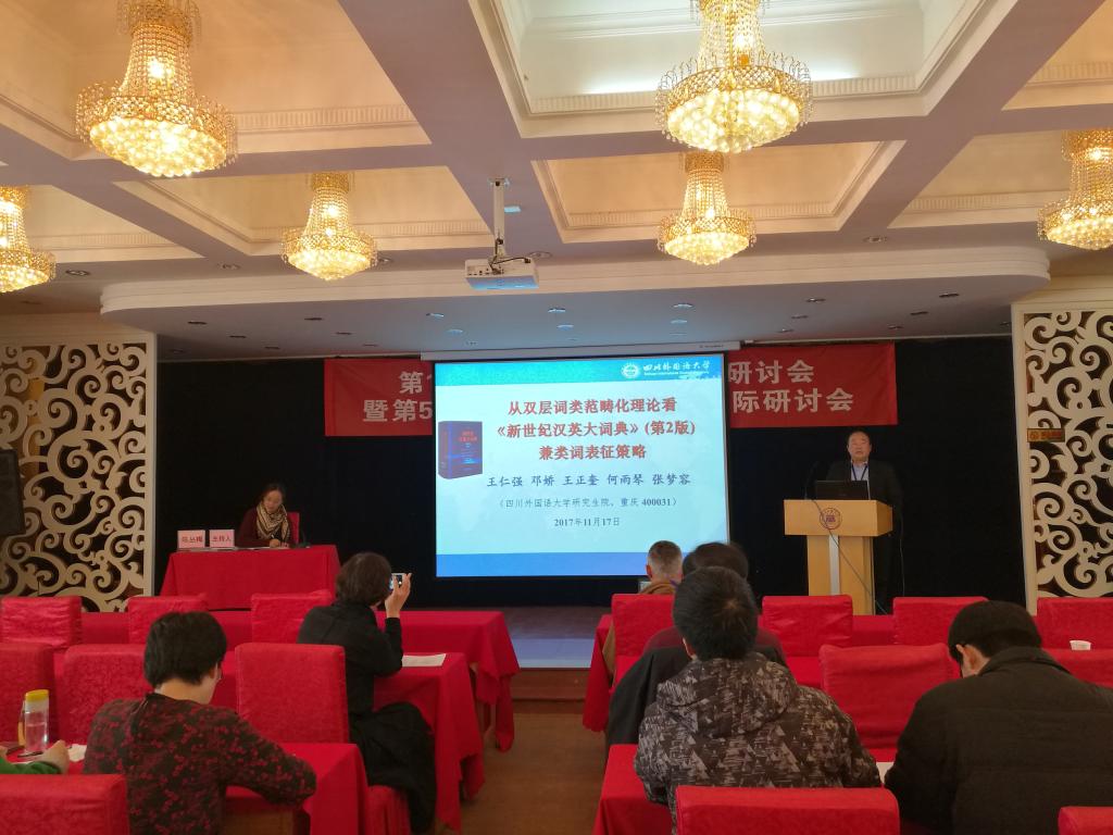 王仁强教授代表课题组做了题为《从双层词类范畴化理论看<新世纪汉英大词典>(第2版)兼类词表征策略》的大会主旨发言。他指出,目前世界汉语学习词典最大的问题是词类标注问题,因为“词类标注是牵一发而动全身的大事”;在兼类问题上主张“简约原则”的学者,把本该属于文化传承产物的(社群)语言当成了与使用无关的自然产物进行范畴化,没有注意区分概括词和个体词不同的词类范畴化过程。根据自己提出的双层词类范畴化理论并基于自建的全样本词类标注数据库调查,王教授发现:尽管《新世纪汉英大词典》(第2版)整体编纂质量上乘,但其词类标注受到当前词类问题主流学术观点的消极影响,对高频词的处理存在一定失误,采用双层词类范畴化理论有助于走出当前的困境。王教授的发言引起了与会专家极大反响。