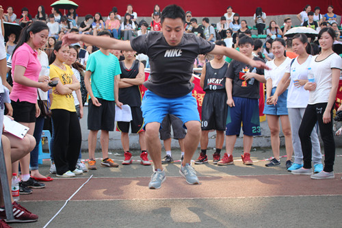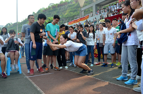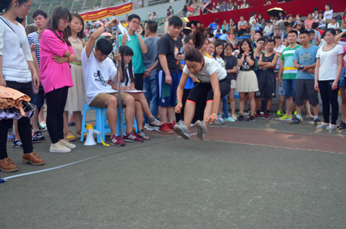 2015年4月28日下午2时30分,2015川外春季运动会学生组混合立定跳远决赛在西校区体育场拉开帷幕。研究生院派出杨银兴、史博伟等同学参加本项比赛。本场比赛全校共有20个代表队参加。烈日炎炎下,选手们纵身一跃在天空中划过一道美丽的弧线。虽然我们没能闯进决赛,但跳远运动员们克服困难、积极参赛的态度,展现了我院的良好精神风貌。