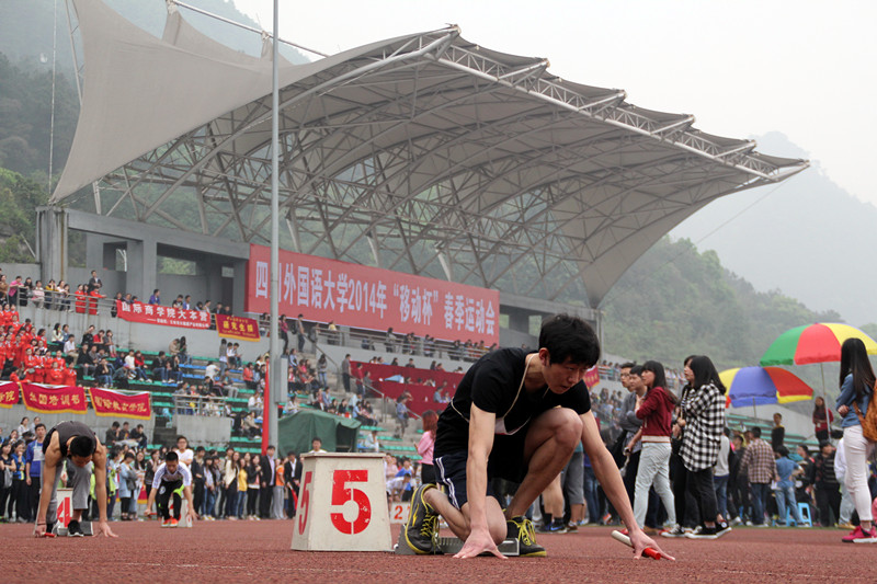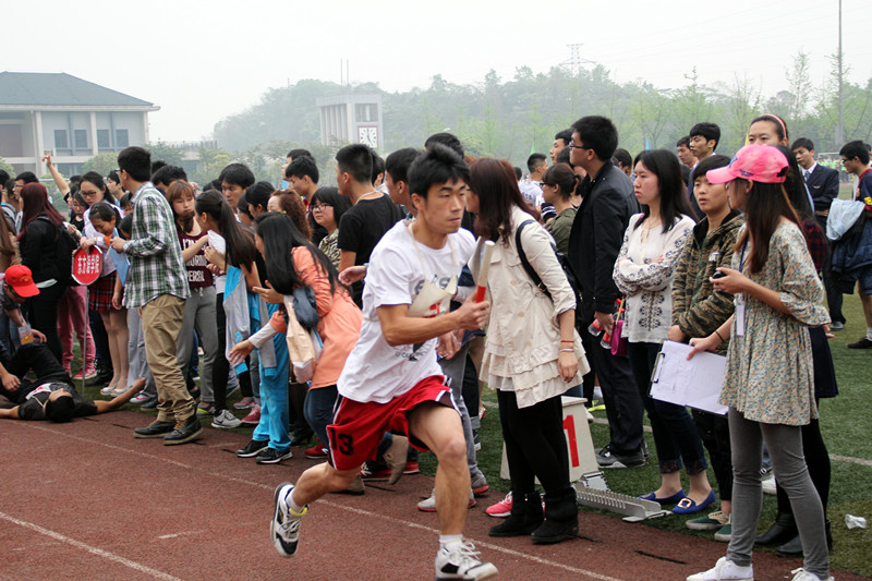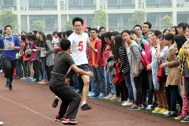 2014年4月11日下午4时30分,2014川外春季运动会学生组男子4*400米接力决赛拉开帷幕。研究生院派出由张豪杰、翟乐遥、杨明哲和樊波四位同学组成的接力队参加本项比赛。本场比赛全校共有14支参赛队伍,分为2组进行比赛。研院接力队被分在了第1组。发令枪响后,我院男子接力队全速冲刺,很快确立了领先优势,最终他们跑出了4分08秒81的成绩,勇夺全校第二名!