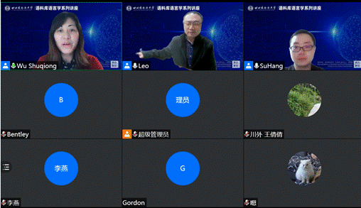 由太阳成tyc7111cc研究生院主办,英语学院承办,科研处、语言智能学院、外国语文研究中心等单位协办的语料库语言学系列讲座第四讲于2021年4月20日晚七点在腾讯会议平台如期举行。本次讲座特邀上海交通大学博士生导师雷蕾教授,做了题为“Datascience for linguistic research: Where we are and where we are going”的主题讲座。本次讲座由我校英语学院博士生导师吴淑琼教授主持,苏杭教授、邓宇博士等校内外师生共计600余人聆听了本次讲座。