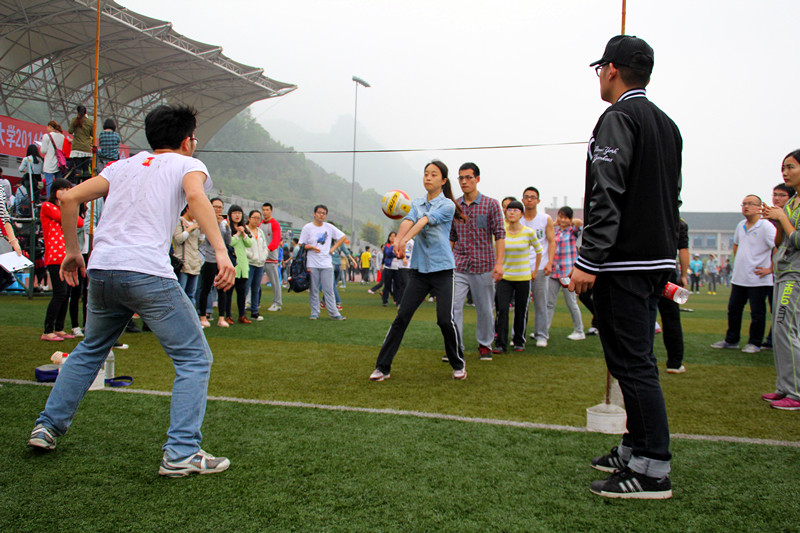 2014年4月11日上午10时,2014川外春季运动会学生组混合排球定点垫球决赛在西校区体育场举行,研究生院派出由10名运动员组成的代表队参加此项比赛。在全体队员的共同努力下,我院代表队在三分钟内共垫起103组(206个)进球,喜获全校第五名的佳绩!为了准备排球定点垫球比赛,我院排球队在赛前专门进行了许多次针对性训练。郑宗律和仇志伟作为去年参赛的老队员在赛前训练中多次抽出自己的休息时间,不辞辛苦地为队员们做技术指导。感谢他们的付出,感谢队员们为我们带来一场精彩的比赛。