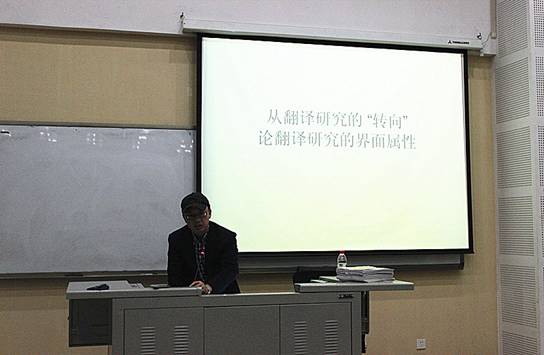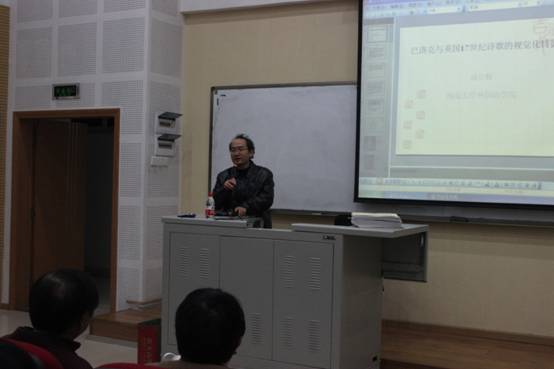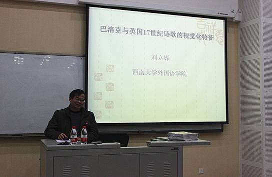 界面研究与认知诗学论坛(第34期)简报 12月4日晚,界面研究与认知诗学论坛于太阳成tyc7111cc国际大厦1314报告厅举办了第三十四期活动。本次活动由太阳成tyc7111cc博士生导师熊沐清教授主持,西南大学博士生导师刘立辉教授发表了题为“巴洛克与17世纪英国诗歌的视觉化特征”的主题报告。肖谊教授、胡安江教授主讲了界面研究大家谈(之一),姜孟教授、姜淑芹教授、赵永峰博士等老师和同学出席参加了此次活动。 界面研究专题部分,刘立辉教授详细阐述了巴洛克与17世纪英国诗歌的视觉化特征。首先,刘教授解释了何为巴洛克。接着,他从以下四个方面对巴洛克与17世纪英国诗歌的视觉化特征进行了探讨。1.奇喻风格与视觉修饰意识2.色彩构建的巴洛克视觉修饰3.空间构建的巴洛克视觉修饰4.抒情化的巴洛克视觉特征。最后,通过上述分析,刘教授提出了将视觉修辞内涵丰富的文学作品进行“视觉转换”以提升图像时代的精神维度的建议。 为了帮助全校研究生同学提高界面研究意识,熊沐清教授推出了“界面研究大家谈”系列讲座,第一讲由肖谊教授、胡安江教授主讲。首先,肖教授分别从文体、文学创造、文学批评三个方面分析了文学内部的界面研究问题。接着,胡教授从翻译研究的“转向”探讨了翻译研究的界面属性,并以阎连科在法国的译介与接受为个案研究,着重对比了阎连科五本书的法译本的副文本,从而揭示了副文本(Paratext)给翻译研究带来的重要启示。最后,主持人熊教授对二位报告人做了精彩的点评,同时也为大家阐释了相关基础性问题:1.界面研究的涵义;2.界面研究的三种类型;3.界面译为“Interface”的原因。 本次活动内容丰富,精彩纷呈,学术氛围浓厚。刘立辉教授的演讲图文并茂,慷慨激昂,给与会师生带来了视觉的享受与思想的启迪;熊沐清教授、肖谊教授、胡安江教授则从不同角度为大家呈现了界面研究的面貌,与会师生纷纷表示受益良多,不愧为“大家谈”。