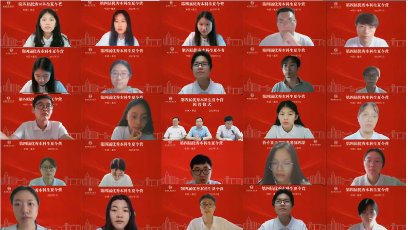 7月10日16:00,夏令营圆满完成各项活动,举行闭营仪式。研究生院赵永峰院长、刘兴兵副院长、陈明志副院长同线上的各学院领导老师和全体营员再次共聚一堂。闭营仪式上,中国海洋大学楼安琪、外交学院区仲衡、湖南大学苏永捷作为营员代表分享了参加夏令营的收获和感悟。研究生院赵永峰院长针对营员们在研究生报考过程中的疑惑从推免与考试、基础知识储备、考试技巧等几方面进行了梳理和解答。