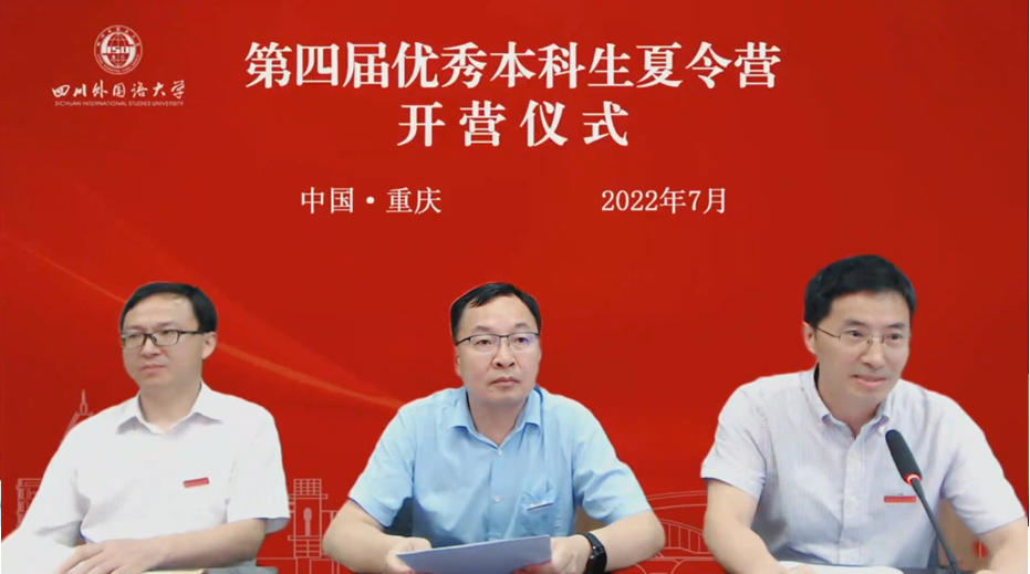7月9日上午9:00,夏令营开营仪式如期举行,副校长王仁强、研究生院院长赵永峰、副院长陈明志、副院长刘兴兵在研究生院主会场,各举办学院领导和老师、全体营员和研究生代表通过网络视频参加。仪式上,王仁强副校长致热情洋溢的欢迎辞,他代表学校对营员们表示了热烈的欢迎,并祝愿大家在夏令营活动中取得丰硕的成果。随后研究生院赵永峰院长给全体营员作了关于川外研究生教育的讲座,详细介绍了学校研究生教育情况和招生考试的情况。川外研究生向营员们分享了川外研究生会活动、研究生学习生活及考研备考经验等内容。