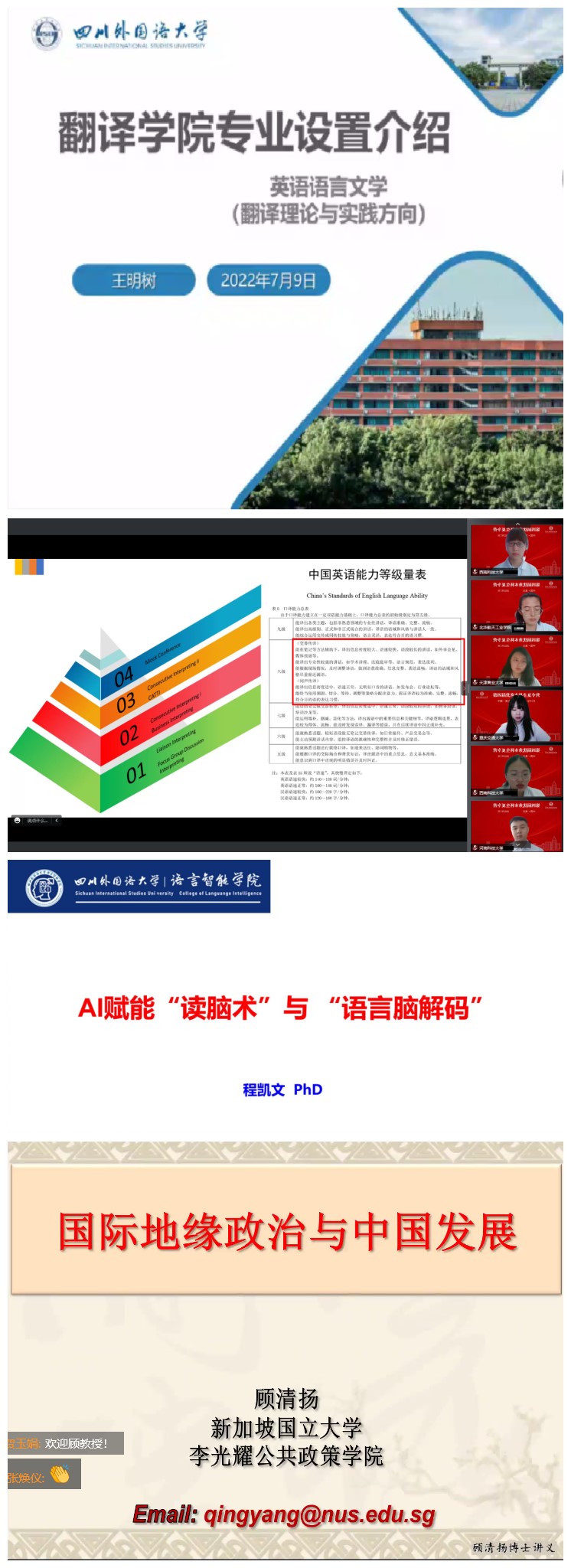 2022年7月9日至10日,太阳成tyc7111cc第四届优秀本科生夏令营成功举办。受疫情影响,本次夏令营采取网络远程方式进行。由研究生院牵头,英语学院、马克思主义学院、国际教育学院、中国语言文化学院、新闻传播学院、法语学院、德语学院、日语学院、东方语言文化学院、国际关系学院、国际金融与贸易学院、翻译学院、商务英语学院、国际法学与社会学院和语言智能学院等15个学院共同参与举办此次活动。