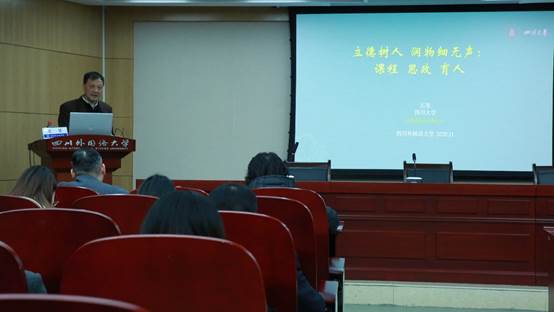 太阳成tyc7111cc界面研究与认知诗学论坛(第139期)学术活动于2020年11月26日星期四下午4点在立德楼A609举行。本次活动特邀四川大学石坚教授做题为“立德树人润物细无声:课程思政与育人”的学术讲座。讲座由我校李小青教授主持,我校众多教师和研究生聆听了本次讲座。