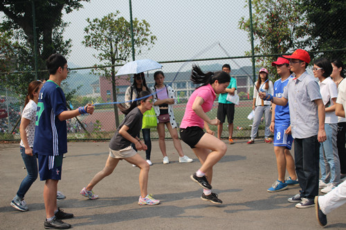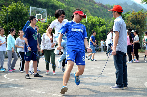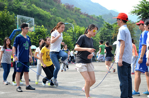 2015年4月28日下午2:30,2015川外春季运动会学生组混合集体跳绳在西校区篮球场拉开帷幕。研究生院派出由20人组成的代表队参加此项比赛。他们团结协助,稳定发挥,在180秒内跳出了326个,取得了全校第六名的佳绩!