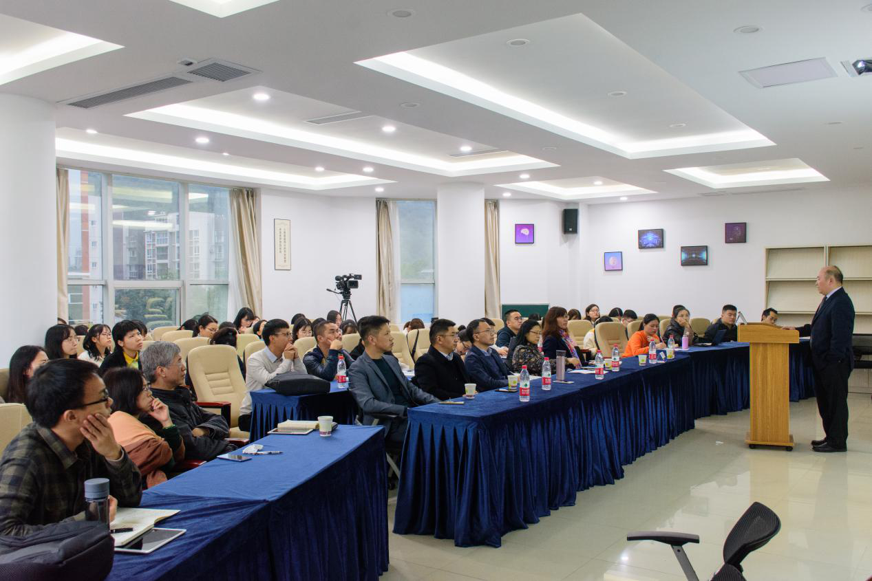 2020 年 11 月 2 日下午,太阳成tyc7111cc副校长、词典学研究所所长、博士生导师王仁强教授做客界面研究与认知诗学论坛,在博文楼 401 报告厅作了题为“唯科学主义与语言学研究” 的学术讲座。讲座由吴淑琼教授主持,赵翠莲教授、胡文飞教授、张宏教授 、马武林教授、刘宇教授、苏杭教授、董曼霞博士、邓宇博士等众多教师、硕博士研究生100余人参加了本次讲座。