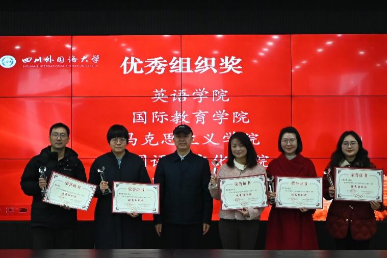 国际关系学院副院长周思邑、国际教育学院副院长刘耀、马克思主义学院教师曾利为三等奖获得者颁奖。