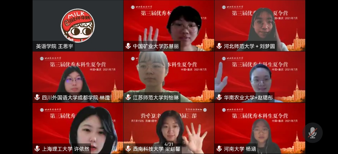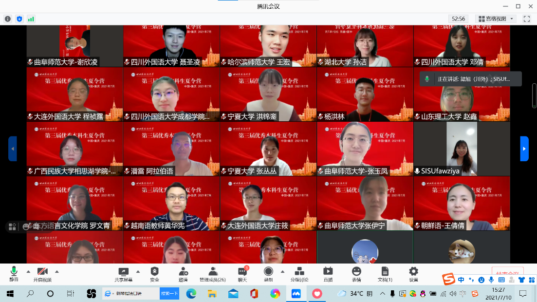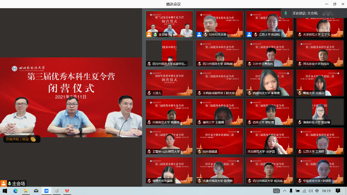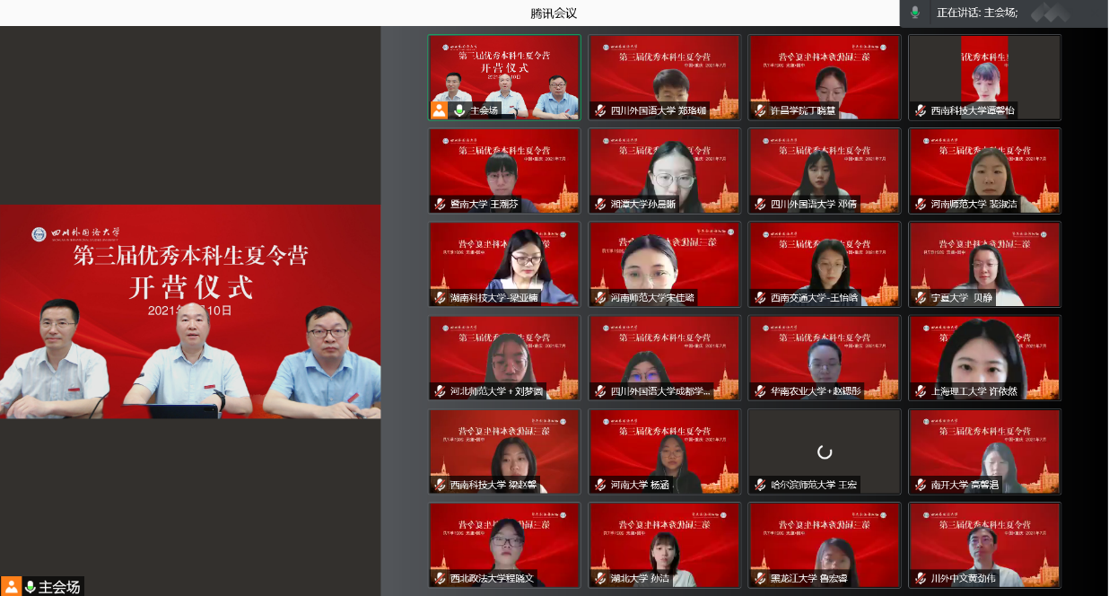 7月10日至11日,学校成功举办“太阳成tyc7111cc第三届优秀本科生夏令营”。受疫情影响,本届夏令营各项活动采取远程在线方式进行,设置1个主会场、10个分会场。夏令营活动由研究生院承办,英语学院、翻译学院、商务英语学院、中国语言文化学院、国际教育学院、德语学院、日语学院、西方语言文化学院、东方语言文化学院和国际关系学院等10个研究生培养学院共同协办。