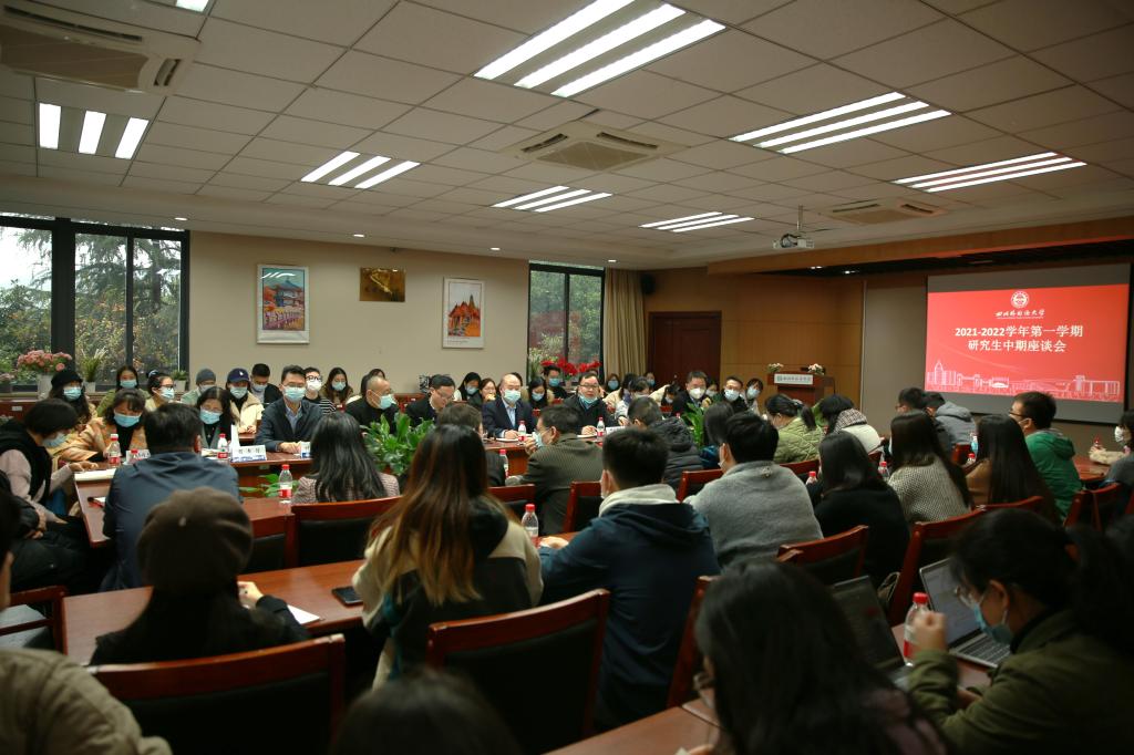 为搭建各培养学院、相关职能部门与研究生的交流、沟通平台,进一步优化资源配置,不断提高研究生教育教学质量,2021年11月11日下午,研究生院在立德楼C216组织召开2021-2022学年第一学期研究生中期座谈会。本次座谈会由研究生院院长赵永峰主持,王仁强副校长,研究生院、学生处、招生就业处、后勤基建管理处、计划财务处、国际合作与交流处、网络信息中心、图书馆等相关职能部门负责人,各培养学院负责人及研究生代表出席。