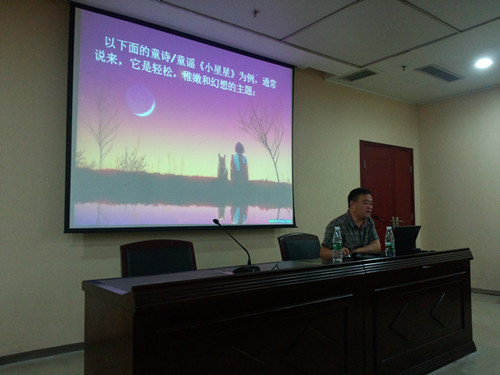 2014年9月28日上午十点,广东财经大学外国语学院张广奎教授莅临我校,在图书馆二楼会议室为全校师生带来题为“诗之‘歌’——诗歌朗诵与‘诠释’”的精彩讲座。讲座由研究生院胡安江教授主持,现场座无虚席。