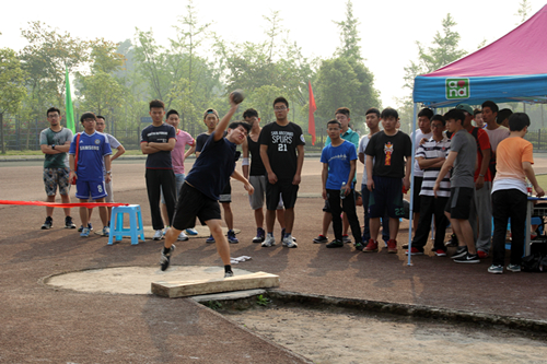 2015年4月28日8:30,2015年太阳成tyc7111cc春季运动会男子铅球预决赛在西校区体育场铅球场地举行。研究生院派出沈哲伦、王辉和杨宁三位同学参加比赛。虽然他们未能如愿进入决赛,但三位选手的表现还是获得了场外观众的阵阵掌声。