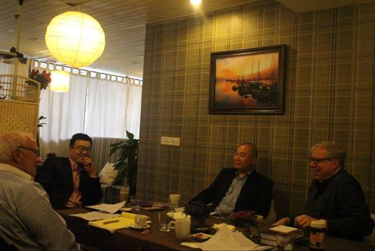 2016年3月27日至28日,英国国际犹太文化中心两位学者Jerry Gotel和Glenn Timmermans教授来访我校,并给我校研究生院学生和其他犹太文化爱好者带来三场精彩的有关犹太历史文化的演讲。28日下午,董洪川副校长代表学校与来宾亲切会晤。研究生院院长王仁强,中犹文化研究所所长傅晓微陪同。 会谈中,双方就中犹两国文化、文学传统等进行了亲切友好的交流,董校长介绍了川外犹太文化研究近年来取得的成绩和与国际犹太机构合作的情况,Jerry Gotel介绍了英国国际犹太文化中心的发展历史及其促进中犹两个民族相互了解的良好愿望。双方就近期在川外开展更多普及犹太历史文化知识,增进犹太文化研究方面的合作做了比较深入的探讨。