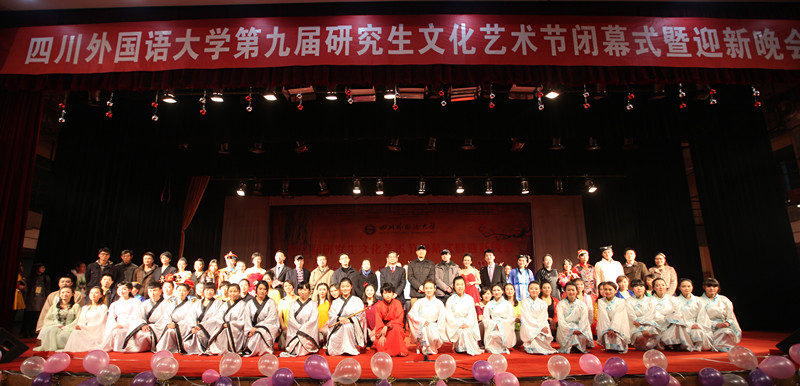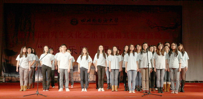压轴节目小语种合唱汇集了中、德、俄、法四国语言,给大家带来了视觉、听觉上的强烈冲击与震撼,充分体现了川外多语种的优势和特色。晚会在小语种合唱悠扬的歌声里落下帷幕。