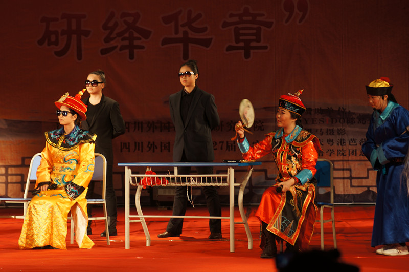 由2013级8班选送的话剧《皇帝选妃》幽默诙谐,将《中国好声音》的综艺风格贯穿话剧,笑点接连来袭,台下观众笑声连连,掌声不断。