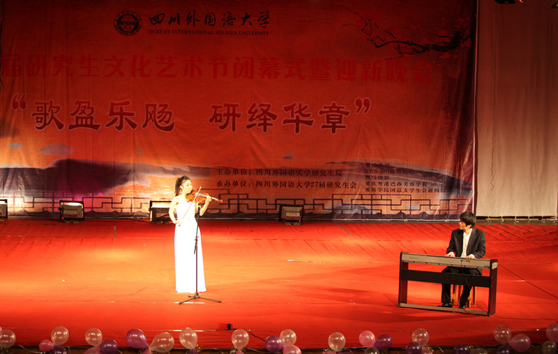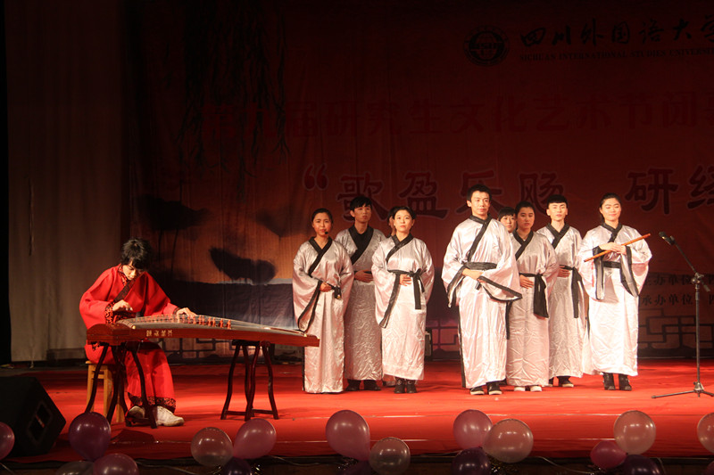重庆市十所高校41名研究生代表也受邀和我校师生一同观看了晚会。晚会现场座无虚席,热闹非凡。此次晚会以“歌盈乐飏,研绎华章”为主题,古典与现代的碰撞,东西方艺术的融合汇成了此次视听饕餮盛宴。