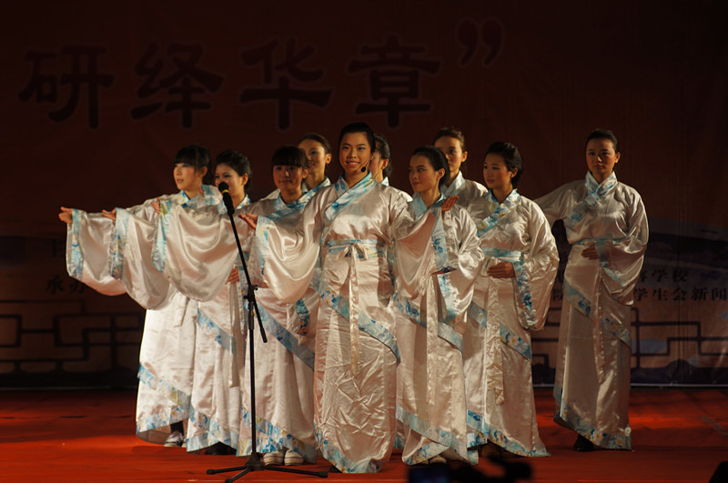 2013级2班同学带来的古筝合唱《临江仙》集古典乐曲演奏、合唱于一体,曲风悠扬、悦耳,余音绕梁。