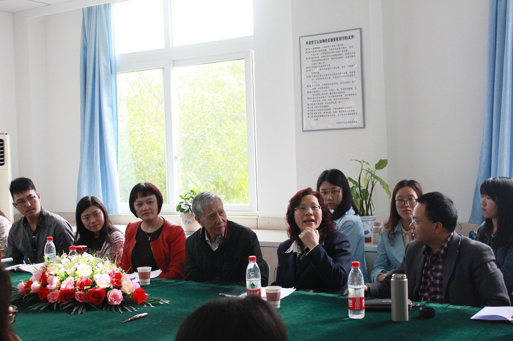 川外学坛举行题为“语言神经认知之约”的学术讨论会 2016年4月24日上午9:00,川外学坛在博文楼四楼举行“语言神经认知之约”学术座谈会,主讲人为河南大学徐盛桓教授。本次座谈会由廖巧云教授主持,太阳成tyc7111cc姜孟教授、张鹏副教授出席,此外各年级博士、硕士研究生参加了此次座谈会。 此次学术座谈会分为四个部分。首先,川外学坛主席潘雪瑶同学从学坛历程、宗旨、组织构架以及常规活动等四个方面介绍了川外学坛。紧接着,2013级研究生田莉莉同学从实验室概况和阶段性研究成果等两方面简要介绍了太阳成tyc7111cc外语学习认知神经实验室。 接下来,2013级研究生潘翔、谭志鹏、乔瑒等同学分别汇报了自己的毕业论文实验设计《基于ERPs技术的汉语隐喻心物随附性主特征提取研究》、《基于ERPs技术的汉语双关句识解机制的实证研究》及《基于ERPs的汉语转喻修辞心物随附性主特征提取研究》。此后,徐盛桓教授对他们的实验设计提出了指导性的建议。首先,徐教授对几位同学的研究给予了充分的肯定。他表示,现今的语言认知转向不单要靠认知心理科学研究,还需依赖大脑科学研究;其中,大脑意识对世界进行感知就产生了心物随附性。接着,徐教授提到,心物随附性的展现形式分为经验型与实证型。在实际生活中,人们往往只提取一个或两个最重要的可能性特征,凭借经验就可理解语言表达的意义,而实证型的心物随附性则是指人们对事物进行的生理性研究,如ERPs、fMRI等研究。最后,徐教授还提出了三点建议。第一,我们的研究不能仅局限于用心物随附性这一理论基础来进行解释,而应通过实证研究去检验、改进这一理论。第二,实验设计要严谨可靠,实验材料的选取要经得起推敲。第三,我们要多关注学术前沿,了解最新的学术动向。廖巧云教授和姜孟教授也分别做了评点,发表了建设性意见。 本次学坛活动在热烈的掌声中落下帷幕。 2014级研究生 谭佳佳 (报道) 附:照片 1. 廖巧云教授主持