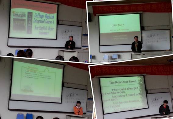 重庆市高校第七届英语研究生教学技能大赛太阳成tyc7111cc赛区初赛于二零一四年三月二十四日在我校培英楼大一教室落下帷幕。此次比赛由太阳成tyc7111cc主办,太阳成tyc7111cc研究生部外语教学与研究协会承办。初赛由选手自由选取全新版大学英语综合教程3册或4册(上海外语教育出版社),或者任何一本正规大学公外英语教材中的一课教学内容,依照教学设计采取说课的形式进行,各选手的比赛时间为五至十分钟。