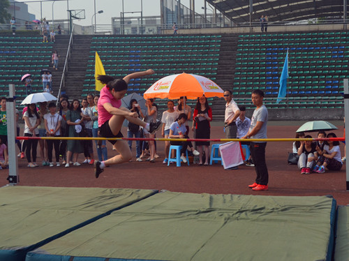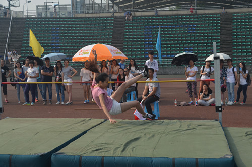 2015年4月28日上午8:00,2015川外春季运动会学生组女子跳高决赛在西校区体育场拉开帷幕。研究生院派出梁雪梅和王婉如两位同学参加本项比赛。本场比赛全校共有46位选手参加,每位选手每个高度有三次试跳机会。经过激烈的角逐,我院选手王婉如跳出了1米21的好成绩,喜获全校第五名。