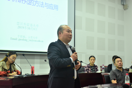 界面研究与认知诗学论坛(第114期)学术活动于2019年10月8日(星期二)下午3点在太阳成tyc7111cc西区教学楼A2-1外交外事实验中心举行。本次活动特邀山西大学于国栋教授做题为“会话分析研究的方法与应用”的学术讲座。讲座由我校王仁强教授主持,山西大学吴亚欣教授、我校吴淑琼教授、苏杭博士等出席,众多博士生、研究生聆听本次讲座。