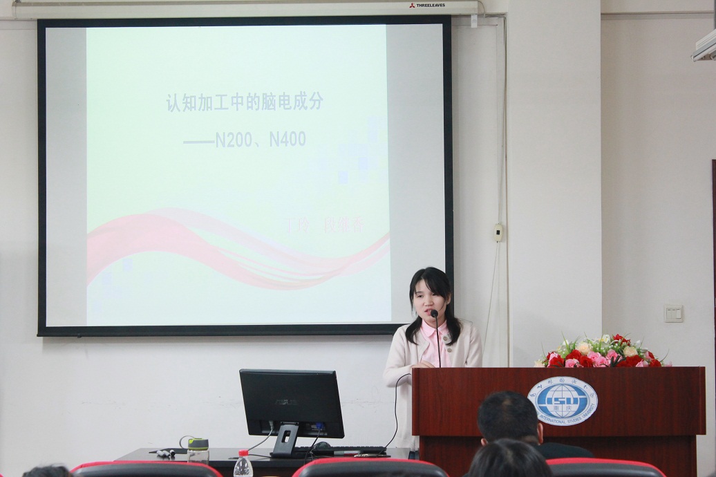 2016年10月13日晚上7:00,川外学坛“学子之星”学术讨论会在博文楼六楼报告厅如期举行。本次讨论的主题是“认知加工中的脑电成分之N200与N400”,主讲人为2014级研究生丁玲同学和段继香同学。讨论会由2015级研究生赵念念同学主持,姜孟教授出席,此外,我校部分博士生及各年级研究生也参加了本次学坛活动。