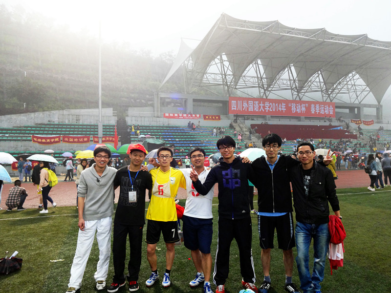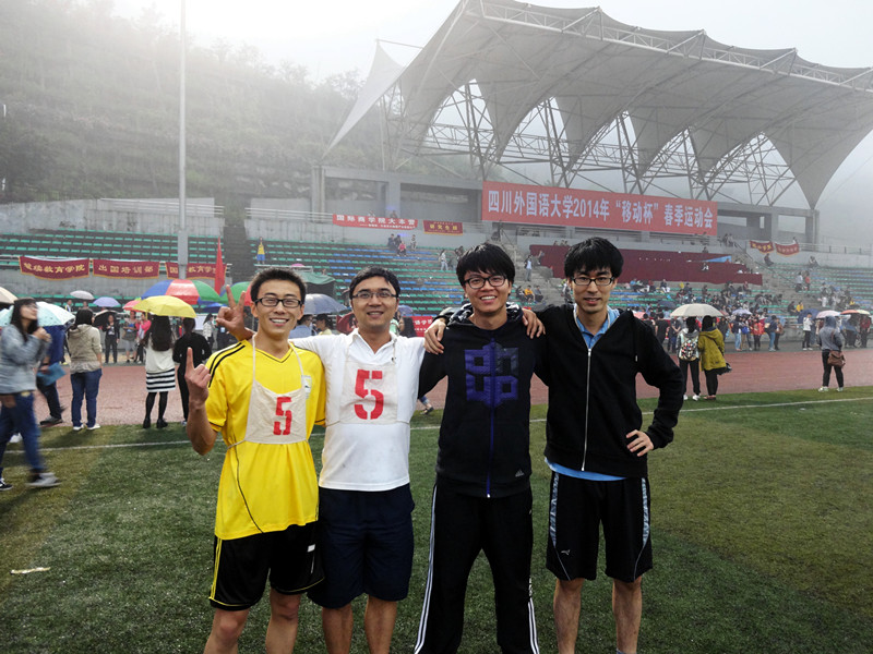 2014年4月10日下午6时15分,2014川外春季运动会学生男子4*100米接力赛在川外西校区体育场举行。研究生院派出以洪亮、张洋、杨银兴和舒敏敏四位同学组成的接力队参加比赛。凭借着四位运动员的出色发挥,我院男子接力队以51秒26的成绩喜获第五名。
