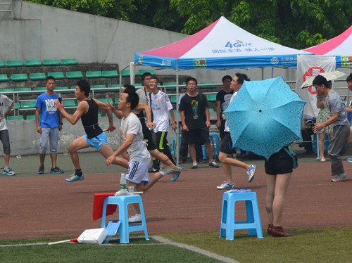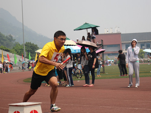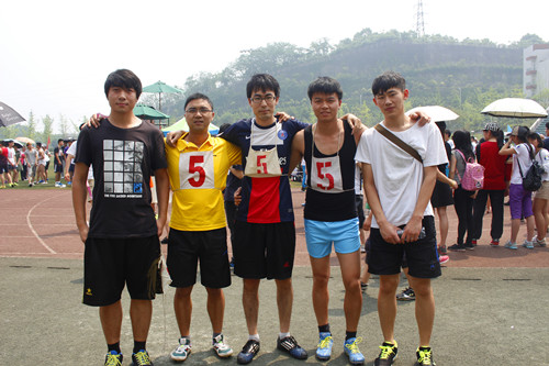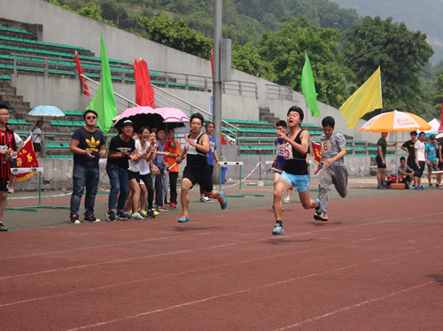 2015年4月28日上午11:40,2015川外春季运动会学生组男子4*100米接力赛在西校区体育场拉开帷幕。研究生院派出以洪亮、杨银兴、史博伟和王辉四位同学组成的接力队参加比赛。凭借着四位运动员的出色发挥,我院男子接力队以52秒14的成绩喜获小组第二,总排名第八名。