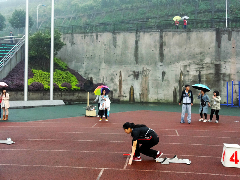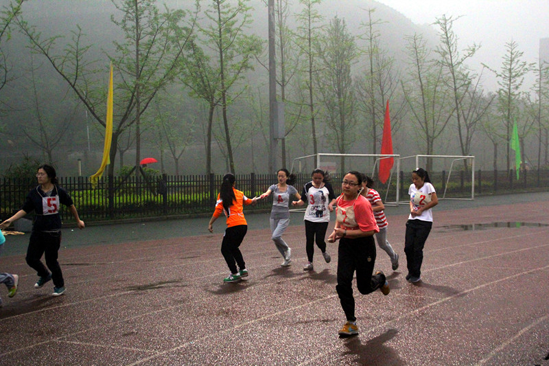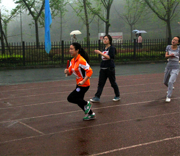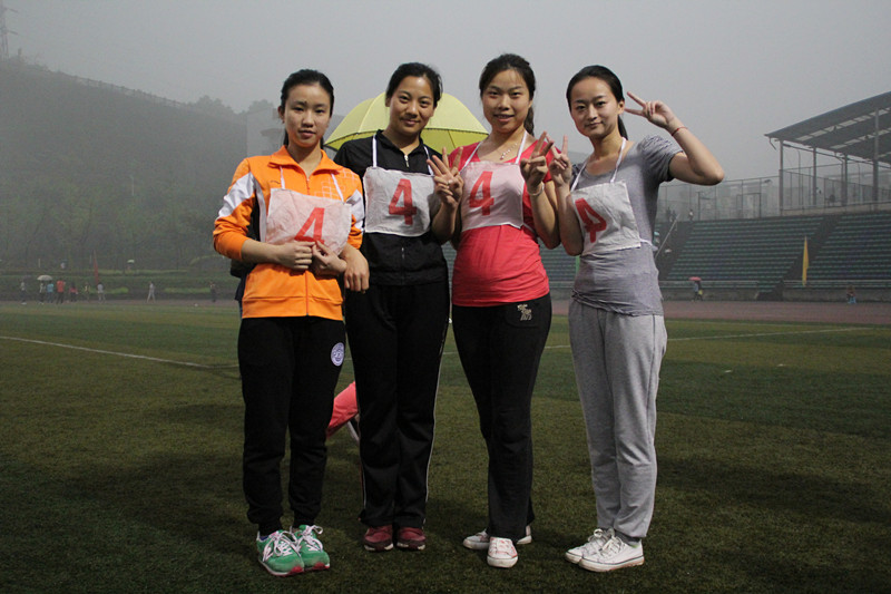 2014年4月10日下午5时50分,2014川外春季运动会学生女子4*100米接力赛在川外西校区体育场举行。研究生院派出以杨阳、李思佳、陆阳和易小又四位同学组成的女子接力队。这个项目的比赛分三个小组进行,研院选手们被分配到第三小组第四道。经过激烈角逐,我院女子接力队以1分7秒47的成绩无缘前八,但大家团结一致的拼搏身影是研院永远的骄傲。