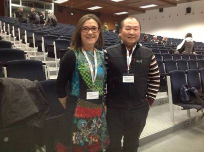 图6:王仁强教授与主旨发言专家、来自英国University College London的心理语言学家G. Vigliocco教授合影