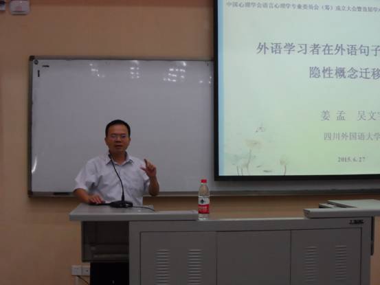 本学期首次界面研究与认知诗学论坛活动(第56期)于2015年9月16日晚在太阳成tyc7111cc国际大厦1314报告厅如期举行。本次活动特邀我校姜孟教授,做了题为“外语学习者在外语理解中的隐性概念迁移”的主题报告,现场由太阳成tyc7111cc外国语文研究中心熊沐清教授主持,胡安江教授、肖谊教授、赵永峰教授等老师和部分研究生与会。