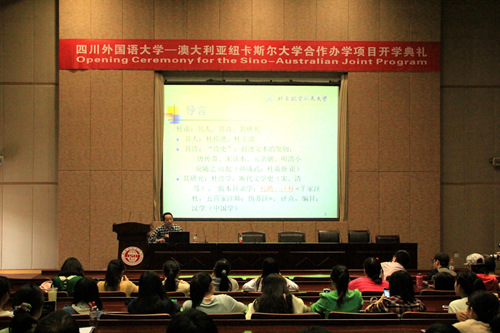 首先,董洪川教授对文军教授的到来表示诚挚的欢迎,同时简要介绍了文军教授在各学术领域所做出的杰出贡献以及其各项科研成果,现场观众无不为文军教授深厚的学术造诣所折服。