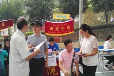 在校园内到处可以看到人性化的道路指示,面带微笑的志愿者,以及不辞辛苦的工作人员,使整个学校俨然有一种家的感觉。同时,研究生院积极与各院系保持联系,了解全体研究生新生报到工作的进展,新生报到有序快速进行,各项工作进展顺利。由于研究生管教分离的进一步全面推进和落实,研究生院也积极为有疑惑的新生提供帮助。我校副校长董洪川教授、研究生院院长王仁强教授、副院长胡安江教授、淡修安书记等亲临现场指导迎新工作,向远道而来的新生和家长表示欢迎,并亲切问候了研究生会工作人员和迎新志愿者。