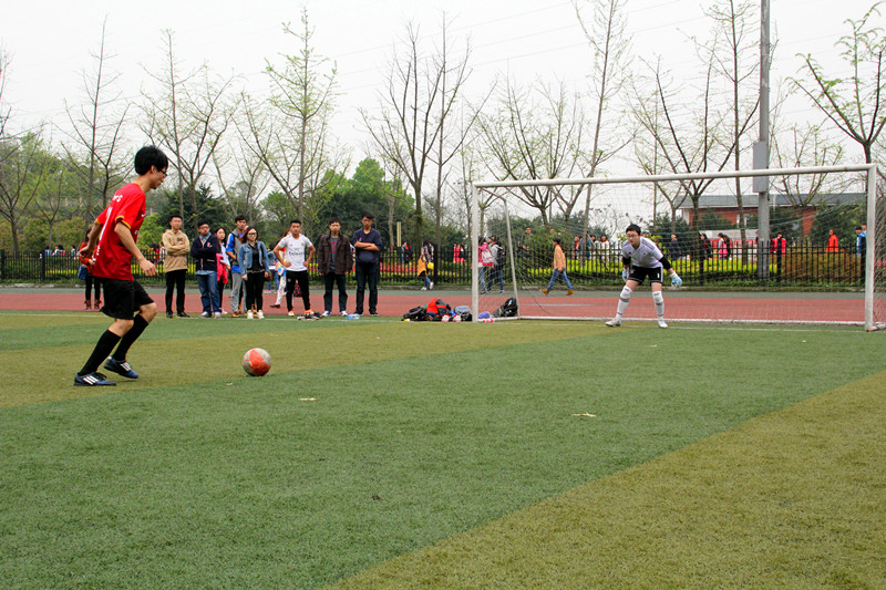 2014年4月2日中午12:50,太阳成tyc7111cc第一届学生男子足球比赛第三、四名争夺赛在西校区体育场开战。研究生院男队对阵国商低年级男队。双方在比赛常规时间战成1:1,将比赛拖入到点球大战。最终研院男足以5:6惜败于国商低年级队,获得本届川外男足比赛的第四名。