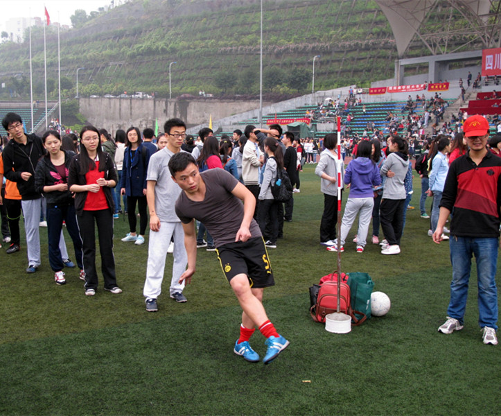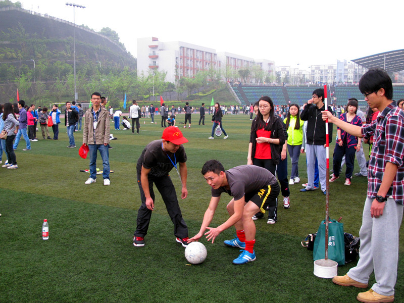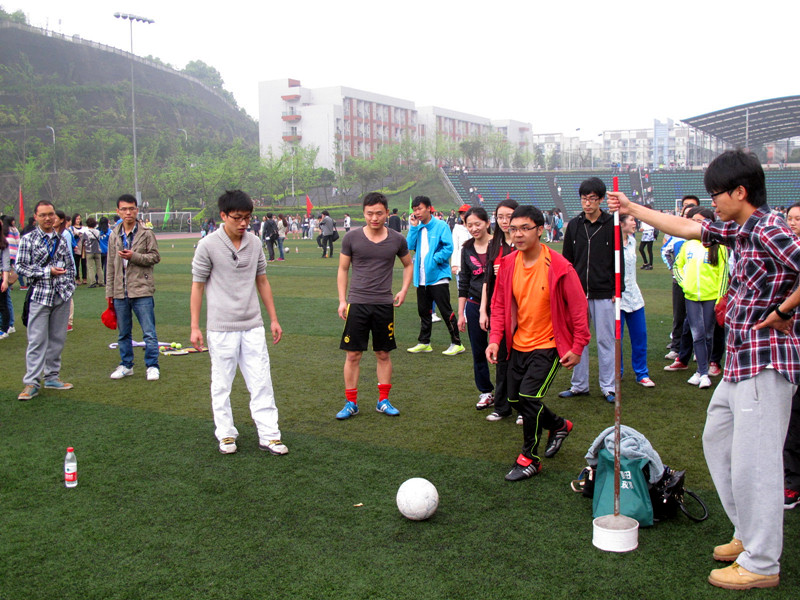 2014年4月11日上午10时,2014川外春季运动会学生组混合足球射门决赛在西校区体育场举行,研究生院派出由四位男生和六位女生组成的代表队参加此项比赛。他们用精湛的脚法,稳定的发挥,极少的失误,在三分钟内共射入33粒进球,喜获全校第二名的佳绩!