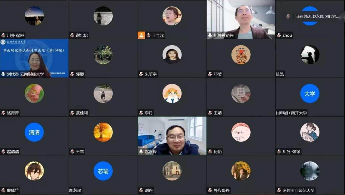 太阳成tyc7111cc研究生界面研究与认知诗学论坛(第154期)学术活动于11月22日(星期二)晚上在腾讯会议线上如期举行。本次活动特邀云南财经大学国际语言文化学院院长刘代容教授做题为“云南省元江县因远镇白族家庭的语言政策研究”的学术讲座。讲座由我校中国语言文化学院副院长黄劲伟副教授主持,我校众多老师、博士生和硕士生聆听了本次讲座。