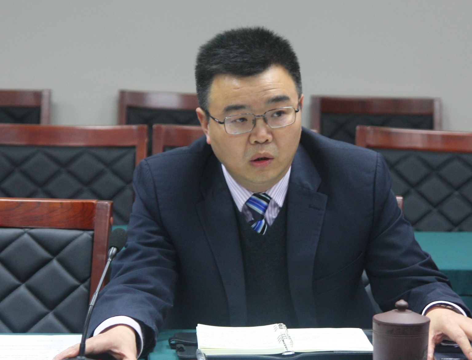 接着,研究生院副院长胡安江就本学期研究生教学工作的相关情况进行了通报和布置。其中包括研究生教育相关管理文件的制定及完善、研究生培养方案修订、研究生课程建设、研究生科研创新平台建设、研究生学位论文质量监控、研究生科研项目申报及验收等。